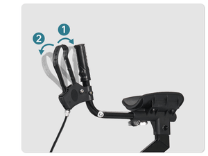Dual Brakes: (1) squeeze to slow down and (2) press down to lock the wheels