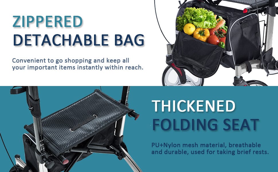 Comfort is key, especially if the walker will be used for extended periods. Look for padded seats and armrests, ergonomic handles, and breathable materials to reduce fatigue. A walker with a storage basket or bag is also practical for carrying personal items.