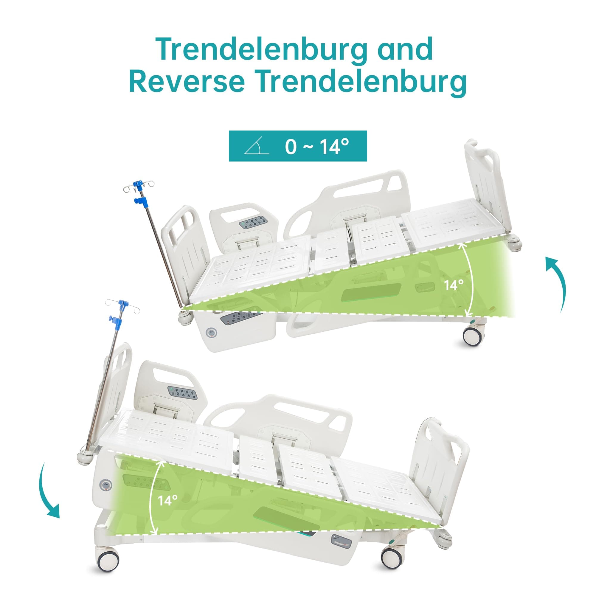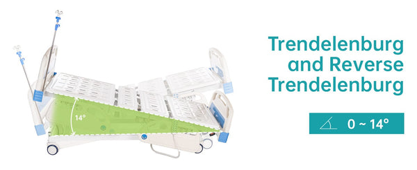 Trendelenburg and Reverse Trendelenburg positions allow safe and adjustable head-down or head-up tilting up to 14°, enhancing patient comfort and medical care.